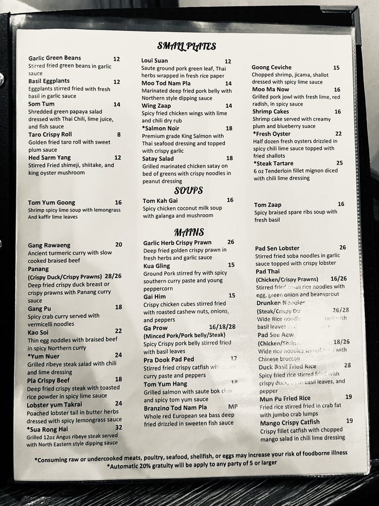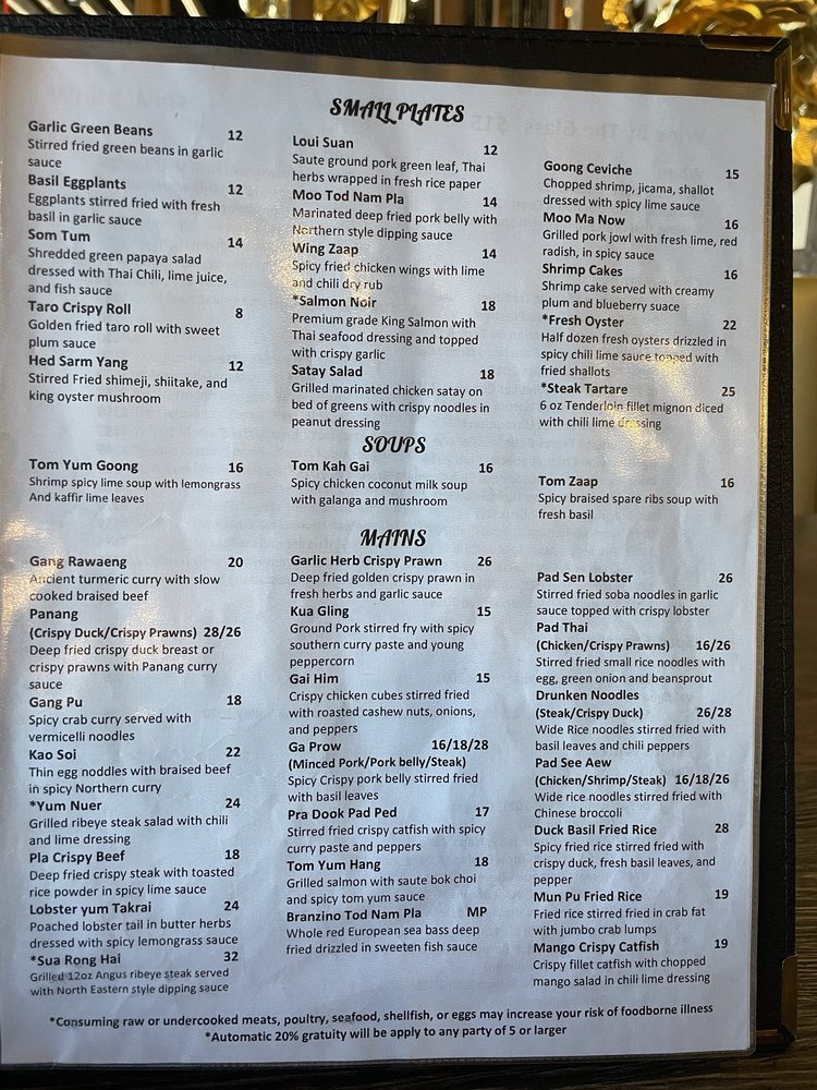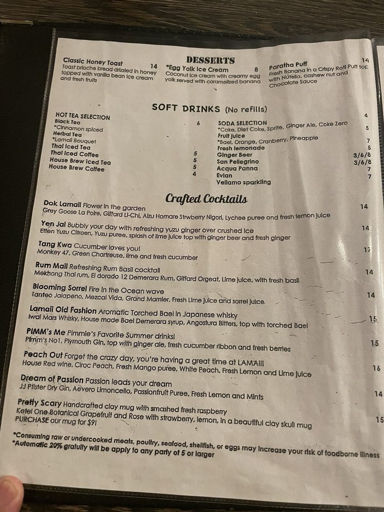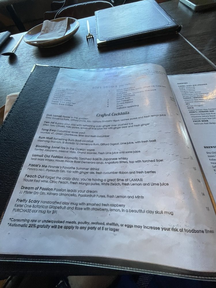 Lamaii, located in Las Vegas, offers a wide variety of Thai dishes in a trendy and intimate setting. The menu features small plates like Taro Crispy Roll and Moo Tod Nam Pla, flavorful soups like Tom Yum Goong and Tom Kah Gai, and mains such as Gang Rawaeng and Panang Crispy Duck. Customers rave about the crispy shrimp, Panang curry, Pad See Ew, and Mu Pu Fried Rice. The restaurant is known for its high-quality Thai food, friendly service, and reasonable prices. While some dishes may need a bit more seasoning, overall, Lamaii is a must-visit for authentic Northern Thai cuisine in Vegas. With its beautiful ambiance and delicious offerings, Lamaii promises a memorable dining experience.